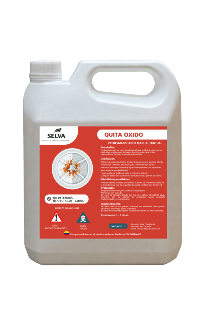 Diseñado para eliminar manchas de óxido y agua dura sin deteriorar ni debilitar las fibras textiles.
